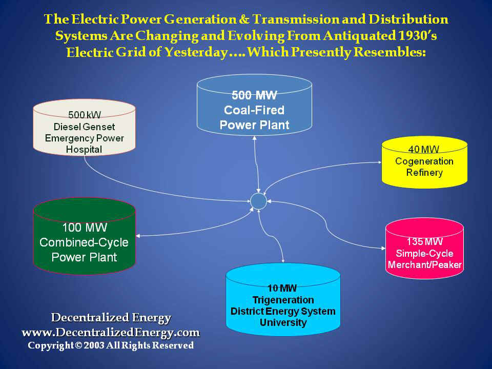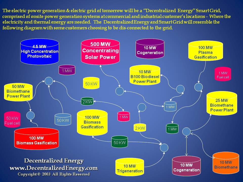 The electric grid of the 21st century (see slide below) will be Decentralized, Smart, Efficient and provide "carbon free energy" and "pollution free power” to customers who remain on the electric grid. Some customers will choose to dis-connect from the grid entirely. (Electric grid represented by the small light blue circles in the slide below.)